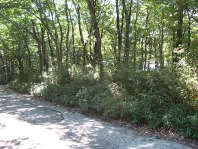 対象地は5度程度の中斜面ですが,接面道路より高位に位置しており,斜面による有効利用面積の減少等不利益はさほどありません.アイディアによっては相当魅力的な別荘ライフの可能性を内在している別荘地です.