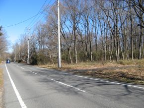 北西側,幅員9m舗装県道・ほぼ等高位に位置 |