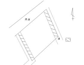 画地の北東及び南西側に分譲地用の舗装道路が隣接していますが,いずれも建築基準法上の道路ではないため,今後背後に建物が建て込むということは考えにくく,実質250坪の画地をゆったりと利用することができます.『洒落た喫茶店』などをお考えの方に最適です.