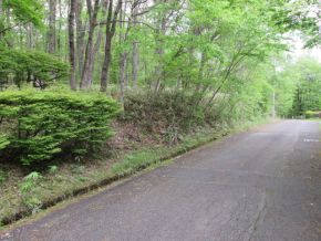 対象不動産は当該別荘地の『白雲台』地区に所在しています。『つつじ山公園』の東方背後に位置する別荘地で、敷地部分は道路より2m弱高位に位置していますが、敷地内はほぼ平坦ですので、建物は建築しやすい画地となっています。周囲は、やはり建築しやすい地勢から数多くの別荘が建ち並び(といっても各敷地が広いので建て込んでいるイメージではありませんが…。)、企業保養所なども見受けられます。