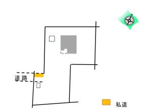 西側,幅員4.7m未舗装私道・ほぼ等高位に接面 |